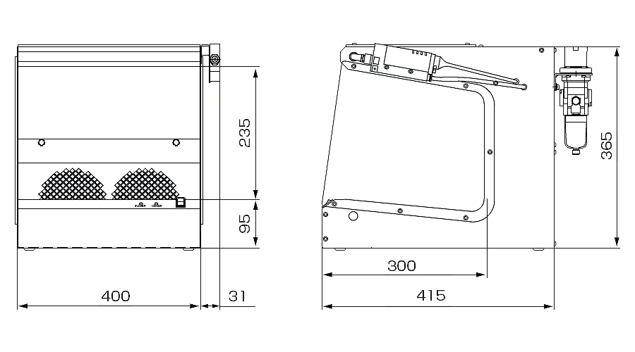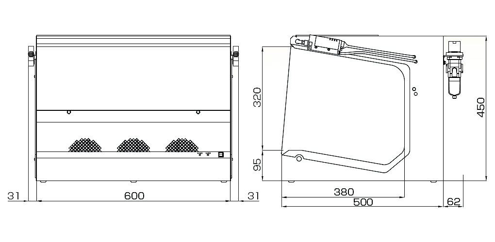 浄化 (ミスト浄化率98%以上)された圧縮空気 |