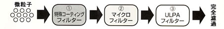 | ■特長 強力な吸引力と特殊フィルターシステムによって0.1ミクロンのチリ、細菌を99.99%キャッチします。排気は完全クリーンエアーでチリや細菌が室内に飛散しません。 ●紙パックフィルター(MD6S-10MHのみ) 粒径の大きな粉塵はすべてこのフィルターに回収されます。脱着が簡単で回収物の取り出しが楽にでき、手を汚さずに回収できます。 ●特殊コーティングフィルター 従来のバッグフィルターと異なり、フィルターの表面を特殊加工しているため、微粉塵が付着しにくいだけでなく、ミクロン単位の微粒子を濾過することができます。 ●マイクロフィルター 特殊コーティングフィルターを通過した微粉塵中の0.3ミクロンまでの微粒子を捕集します。 ●ULPAフィルター 0.1ミクロンまでの微粉塵、バクテリア、カビ胞子などさまざまな微粒子を99.99%以上回収します。 ●静かな運転音(68dB (3m)) ●モーター保護機能付き ●低風速排気 上部排気口から6cmのところで排気風速0.3m/sec、床面などのホコリを飛散させません。 ■用途 ●電子工業・精密工業のクリーンルーム清掃 ●食品工場の防カビ対策 ■タイプ