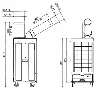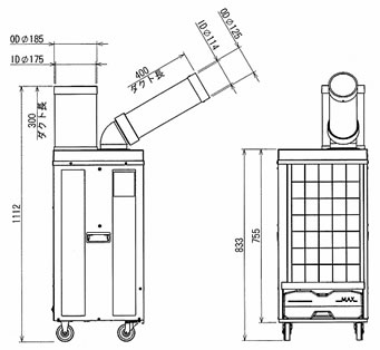 ※別売りの延長冷風ダクト、延長排気ダクトが必要です。