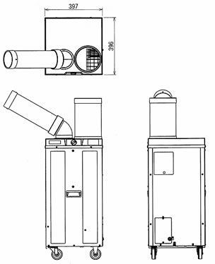 冷風ファン・排気ファンにシロッコファンを採用する事でダクトを延長し冷風を遠く離れた人へ運び、排気熱を室外に排気できます。