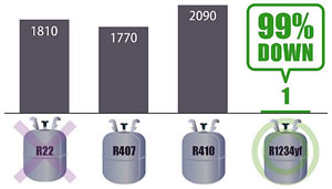 冷房能力は高水準でありながらGWP1と極めて環境にやさしい優れた冷媒で、カーエアコンや自動販売機には使用されており安全性は認められています。