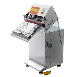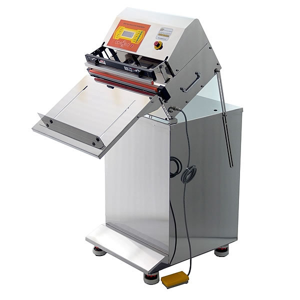 エアー駆動ノズル式脱気真空包装機(傾斜作業台タイプ)