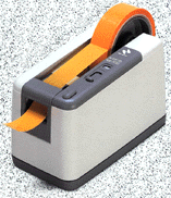 つまみを希望の長さに設定し、レバーを手前に引くことにより水付けされたテープが繰り出され、戻すことにより切断されます より確実な接着力を得るため、水タンク内にヒーターを備えています |