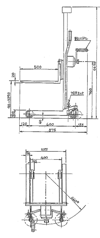 | 手動リフター/品番 KL−08三面図 (詳細図) | |||||