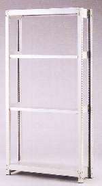 | ■特長 ●ニューデザイン やわらかな色、デザインで、オフィスにもフィットします。 ●25段ピッチ 棚段ピッチは25mmですので、細かい段間隔の設定が可能です。 ●横連結は支柱を共用できて経済的。 ■仕様