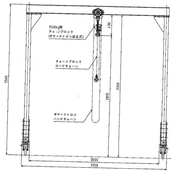 | 簡易門型クレーン/品番 SCF−150 三面図 (詳細図) | |||