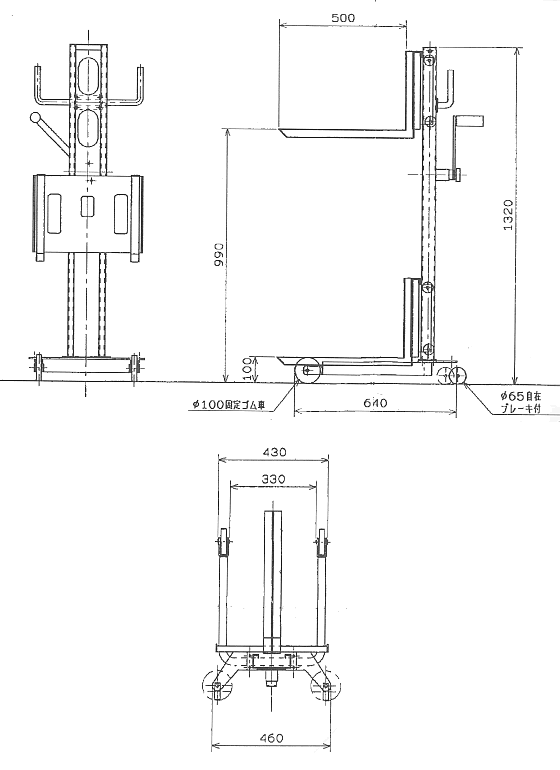 | 手動リフター/品番 SCL-60C 三面図 (詳細図) | |||||||