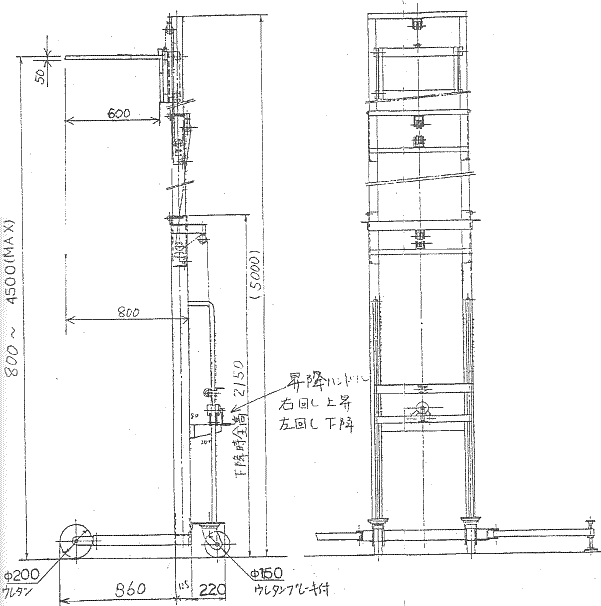 | 手動リフター/品番 SCLH-200 三面図 (詳細図) | |||||||