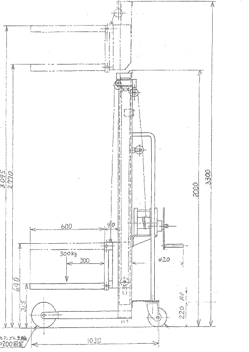 | 手動リフター/品番 SCLH-300-2 三面図 (詳細図) | |||||||