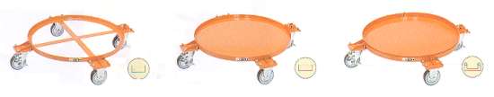 | 【詳細表示】 均等荷重 250㎏ ドラム缶用の台車です。 ※受け皿タイプ(SDR-4)は一体絞り成形ですので、油もれを防止します。 ■仕様