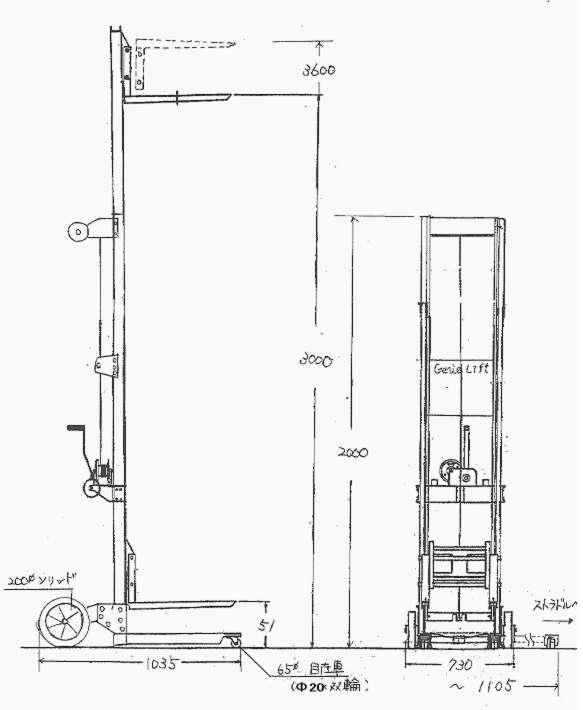 | アルミハイリフトベース幅可変式/品番 M285GL-10N 三面図 (詳細図) | |||||||