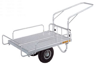 ●多彩な用途にこたえる万能キャリーです。 ●全面フラットな荷台がどんな形の荷物にも対応し、更にガイドを左右前後に調整すれば、様々な大きさのコンテナをラクラクと移動できます。 ●車輪は安定性の良い2輪車構造。しかも車輪幅の調整が可能です。 |