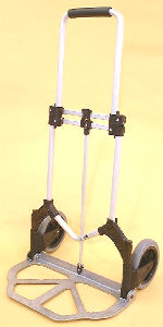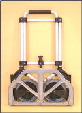 完売です 本体中央のストッパーを解除しハンドルを押し下げ、荷台ベースをたたむと左右のタイヤが同時に収納されます