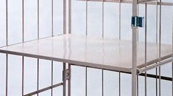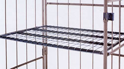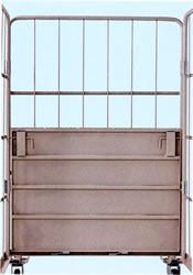 ●中間棚 軽量になり持ち運びが容易となりました。さらにメッシュ構造(50×100mm)の為、どの部分でも手が入り、作業の省力化を実現しました。また、小荷物運搬に最適な鉄板タイプもあります。