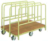 長尺物運搬も可能な台車です。 クイックターン方式で小回りも抜群です。 取手の取りはずしが可能です。 |