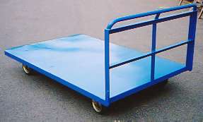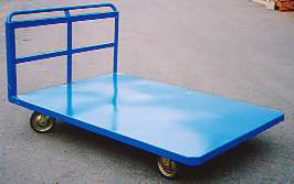 大型片袖鉄板台車です。 床面2.3t圧プレスを行い、自重の軽量化に成功しました。 |