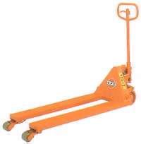 フォーク先端特殊アームにより、1100mmの長さの両面パレットの運搬、積み出しが可能です。 後輪分の空きスペースがあれば、両面パレットの連続敷き積めができ、保管スペースの節約になります。 |