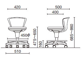 ■寸法図 ![]() ※M526SS-15RKシリーズ、M536SS-15RLACシリーズは背もたれのサイズは含みません。 |