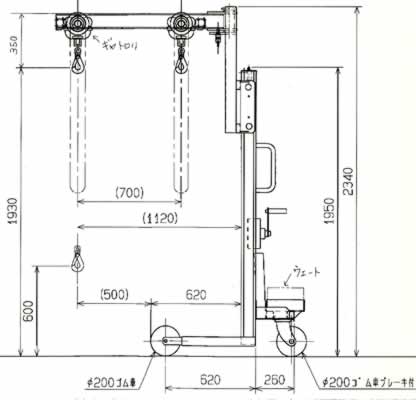 | ジブ型ハンドリフト 品番 SHGL150 三面図 (詳細図) | ||||||||||||||||