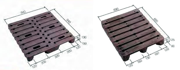 | ■特長 ●抜群の機能と耐久性を持っております。 軽量のため作業性に優れています。また耐衝撃性、耐候性、耐寒性にも優れており広範囲に使用して頂けます。 ●耐薬品性に優れております。 三精、アルカリ性に強く薬品に侵されません。化学薬品用に優れた効果を発揮します。 ●荷滑り防止対策をしております。 デッキ面に滑り止め樹脂をコーティングしております。 ●優れた安全性を持っております。 木製パレットに比べ、釘、木のささくれなどもなく安全です。 ●衛生的です。 洗浄性に優れ、カビ・バクテリアなどの細菌も発生しませんので食品用に最適です。
