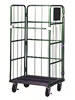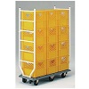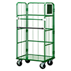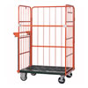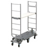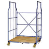 足場部材をエレベーターで運搬するのに最適な低床カゴ台車。