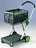 複数の75L折りたたみコンテナの移動に便利、軽量なアルミパイプ製。