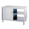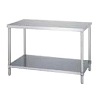 特殊な製造工程により加工したステンレス材を熱処理を行わずにプレスしたステンレス製の盛付調理作業台です。