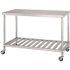 特殊な製造工程により加工したステンレス材を熱処理を行わずにプレスしたステンレス製盛付調理台です。