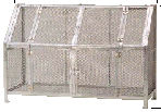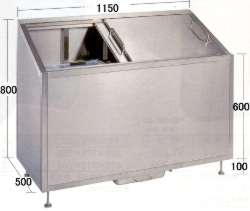 ビン・カンの分別ができる高機能キャビネットです。下段の箱には中仕切りが付いているので、2種類の分別ができます。 |