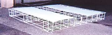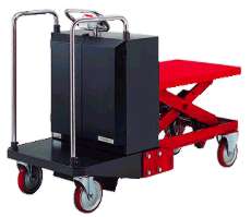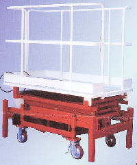 ハット形テーブルに改造仕様にすれば、台車用段差昇降機として利用できます。 |
