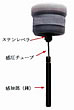 実績のある微圧センサ(ステンレベラ)の先に細いチューブと空洞のある錘を付けた簡単な構造で、上から垂らして錘が液面に着くと錘の先端が液体で塞がれチューブ内の圧力が僅かに上がります。