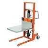 狭い倉庫、狭い通路、どうしてもエンジンリフトや電動リフトが入らない。そんな場所では、スタッカーが威力を発揮します。1tまでの重量物を1.5mの高さまで持ち上げることができます。