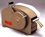 つまみを希望の長さに設定し、レバーを手前に引くことにより水付けされたテープが繰り出され、戻すことにより切断されます より確実な接着力を得るため、水タンク内にヒーターを備えています |