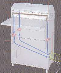 | ■特長 ●内蔵ファンにより、本体内部の粒子を排気ファンに集塵し、ダクトから排出します。 ![]() ●クリーン度の評価基準の説明 国際的なアメリカ連邦規格209Cに従ってクリーン度はサンプリング1CFM中の0.5μm以上の粒子の数をもって評価します。 ■仕様