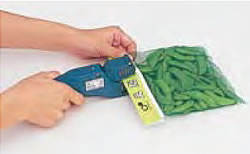 PE袋用発熱式ポイントシーラー 針が包装内容物に混入する恐れのあるステープラーを使用する代わりに、袋止めにご利用いただけます。 ポリ袋やラミネート袋などのポイントシールに最適です。長時間の使用でも疲れない握りやすいレバー形状です。 ネット袋のヘッダーラベルの封緘にもご利用して頂けます。 |