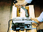 PPヘビーバンド用の熱溶着機です。 引締めは手動、溶着と切断は自動で行います。重量物の梱包に最適です。 |