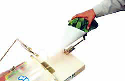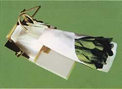 This machine assists the hand packing of spinach, komatsuna, and similar vegetables using your current stock of plastic bags.