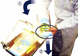 ③Hold the bag and pull it to cover the chute. Keep holding the bag as is.