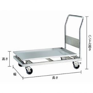 ●荷台にしっかりと補強の入った、板厚1.5tの頑強な溶接式のSUS304製台車です。