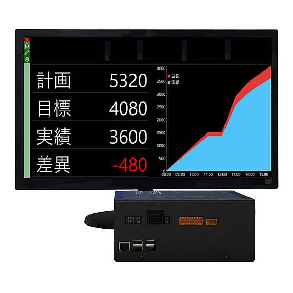 現在の生産状況、出来高折れ線グラフ、汎用入力端子の状態のそれぞれを切り替えて表示する事が出来ます。