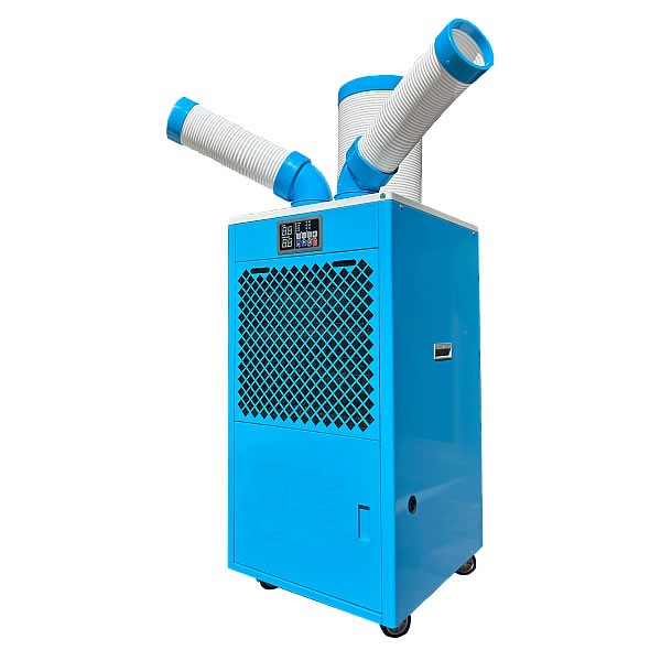 単相(200V)2馬力スポットクーラー1台と冷風分散ダクトを組合せることで、8~10人を同時に冷却可能。