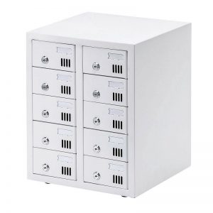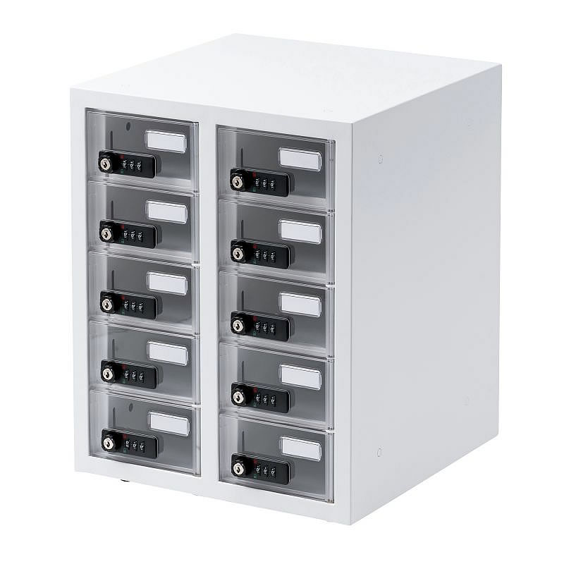 ●10台のスマートフォンを個別に管理できる保管庫です。