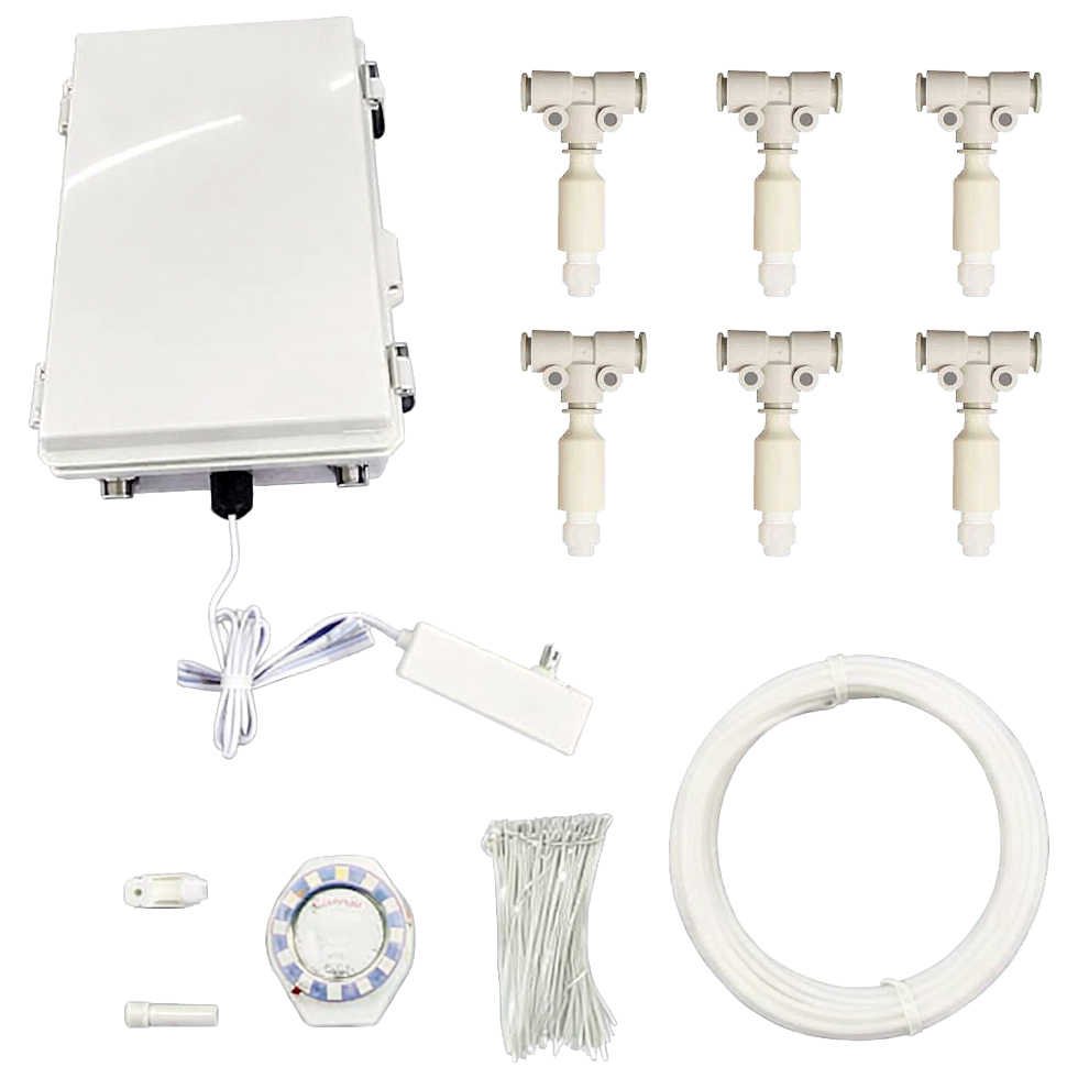 水道・電源のない場所でも市販のタンク貯水容器と小型ポータブル電源があればミストシャワーを生成できます。