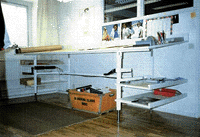 ■使用例(働く人がいる限り、MOVOTECシステムの活動範囲は無限にあります) ●システムキッチン ●製図台 ●縫製台及び刺繍台 ●事務机 ●コンピュータ端末テーブル ●作業台 ●機械テーブルあるいはプラットホーム ●コントロール用デスク ●医療用特別椅子およびベッドあるいは障害者用椅子などの昇降用 ●ビデオ表示部分または製図台の傾斜用 など 一例を挙げましたが、まだまださまざまな用途に使用できます ![]() |