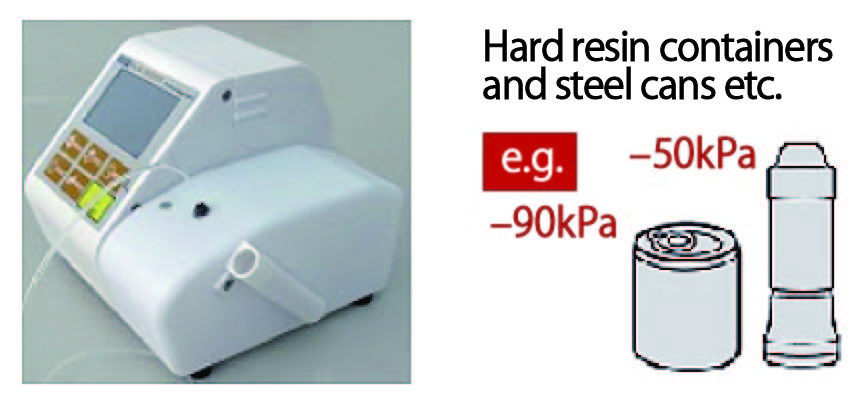 You can do automatic measurement even strong decompression and vacuum packaging that can't be vacuumed automatically with the suction force pump equipped with the standard types. After it vacuums gas needed for a measurement, it's required when the packaging internal pressure is less than -30kPa. Note that it tends to become decompression, especially in low gas volume of samples, after the gas suction.