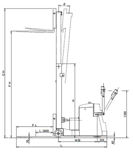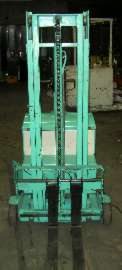 中古品 ●手元集中操作方式を採用しているため走行・リフト操作が簡単で効率的に行えます。 ●セイフティースイッチを装着、走行時オペレーターに触れると逆発進します。 ●走行時のブレーキはハンドルを垂直または水平に操作するだけで作動します。 ●チョッパー(無段変速装置)が標準装備されており、さらにスムーズな運転が可能です。 ●反転式フォークの採用によりエレベーターへの乗り入れが検討できます。折りたたみ時の全長は1450oとなります。 |