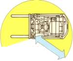 普通の会話を邪魔しない驚異の低騒音。どこでも気がねなく作業できます。 ●場所をとらないコンパクトフォーク クラス最小のボディ。フォークのツメ部分を運転席側に起こせば、さらにコンパクト。 エレベーターにも載せることができます。