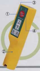 | ■特長 ●コードレスだから、ラクラク! ・吊り荷から離れた場所で、自在に遠隔操作ができます。(到達距離12m) ※使用、環境条件により変動する場合があります。 ・コードレスだから、操作範囲が制約されません。 ●コードレスでも、安心! ・専用の送信コードが設定されており、ほかの機器との混信がさけられます。 ・「フェールセーフ制御」機能を採用。 障害物による信号遮断、妨害光線などがあると運転を自動停止します。 ・不用意にスイッチにふれてもモートルブロック本体に向けなければ受信されず、暴走が回避されます。 ●コードレスだから、経済的! ・ケーブルの劣化や断線などによるメンテナンスコストがかからず、経済的です。 ●赤外線だから、法的規制がフリー! ・赤外線利用のリモコンにより、「電波法」などの法的規制がありません。 ●持ちやすく扱いやすい、高機能リモコン! ・操作性・機能性を高めながら、オリジナリティあふれるデザインで250gの軽量化とコンパクト化を実現しました。 ■持ちやすさと扱いやすさを徹底追求した、高機能リモコン! 操作性・機能性を高めながら、オリジナリティあふれるデザインで250gの軽量化とコンパクト化を実現しました。 (2点式操作と4点式操作共用です)