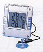 IN/OUTそれぞれのMAX/MINメモリ表示機能付き。 バックライト機能付き。 スタンド、壁面固定用キット付き。 外部センサ、防滴タイプ(吸盤付き) |
