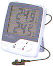 大型液晶デュアル(IN/OUT)表示 MAX/MINメモリ表示機能付き。 OUTセンサは防滴です。 OUTのみHi−Loアラーム機能付き。 |